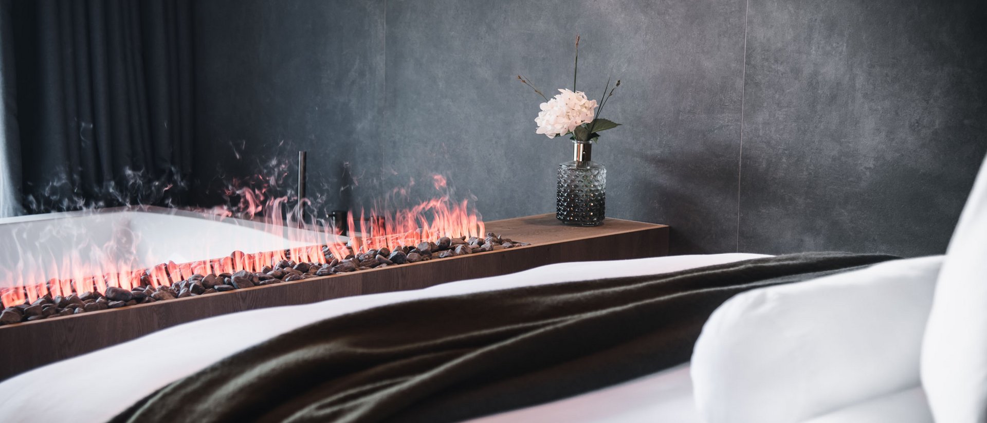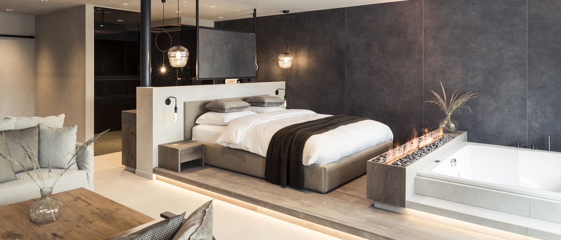 All our chalet suites have a private 8x4m infinity pool (heated all year round), private garden with stylish seats and loungers, an open-plan living area, one or two bathrooms with shower and whirlpool, a separate toilet, hairdryer, makeup mirror, wardrobe, telephone, 42" flat-screen with satellite TV, safe, and Wi-Fi.