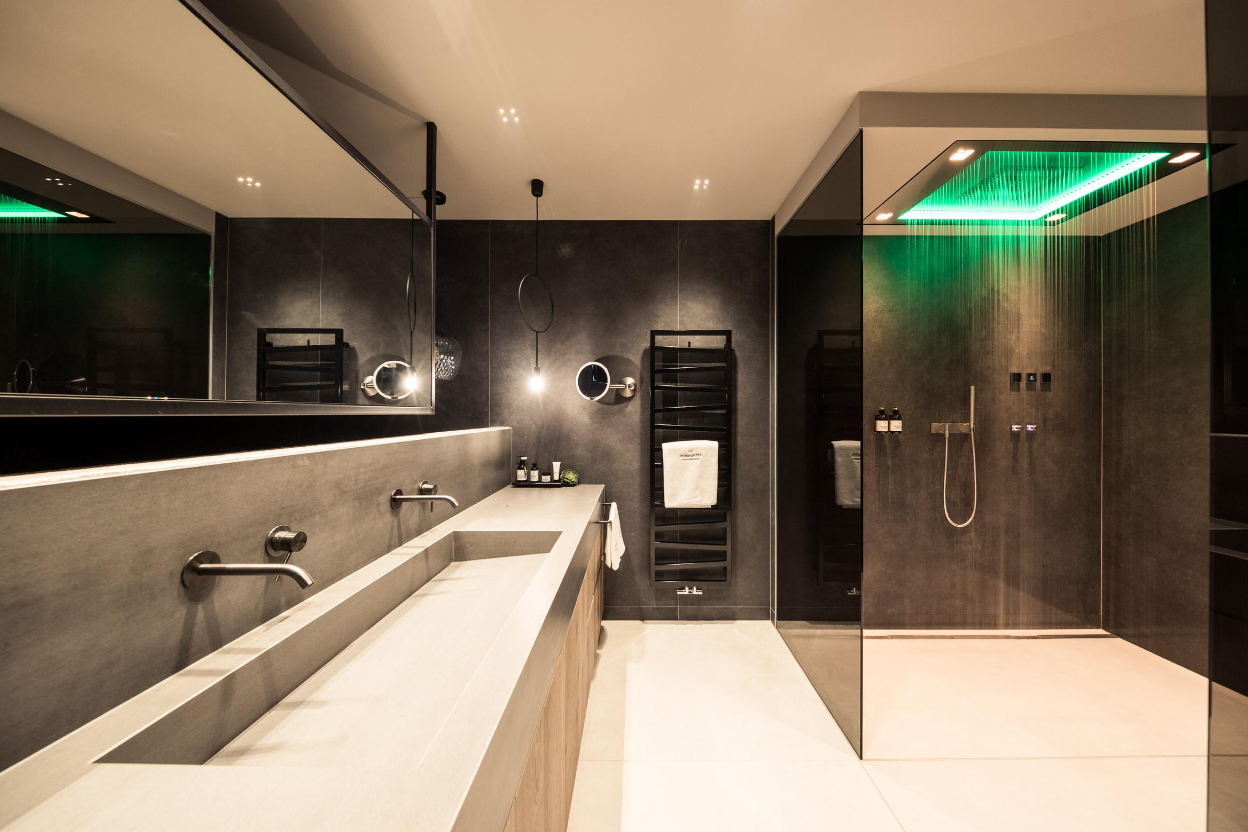 1 bedroom, bath with Sensory Sky Shower as highlight, separate toilet, open living room, private pool (8 x 3 m), whirlpool and loggia (total outdoor area: 100 m²)