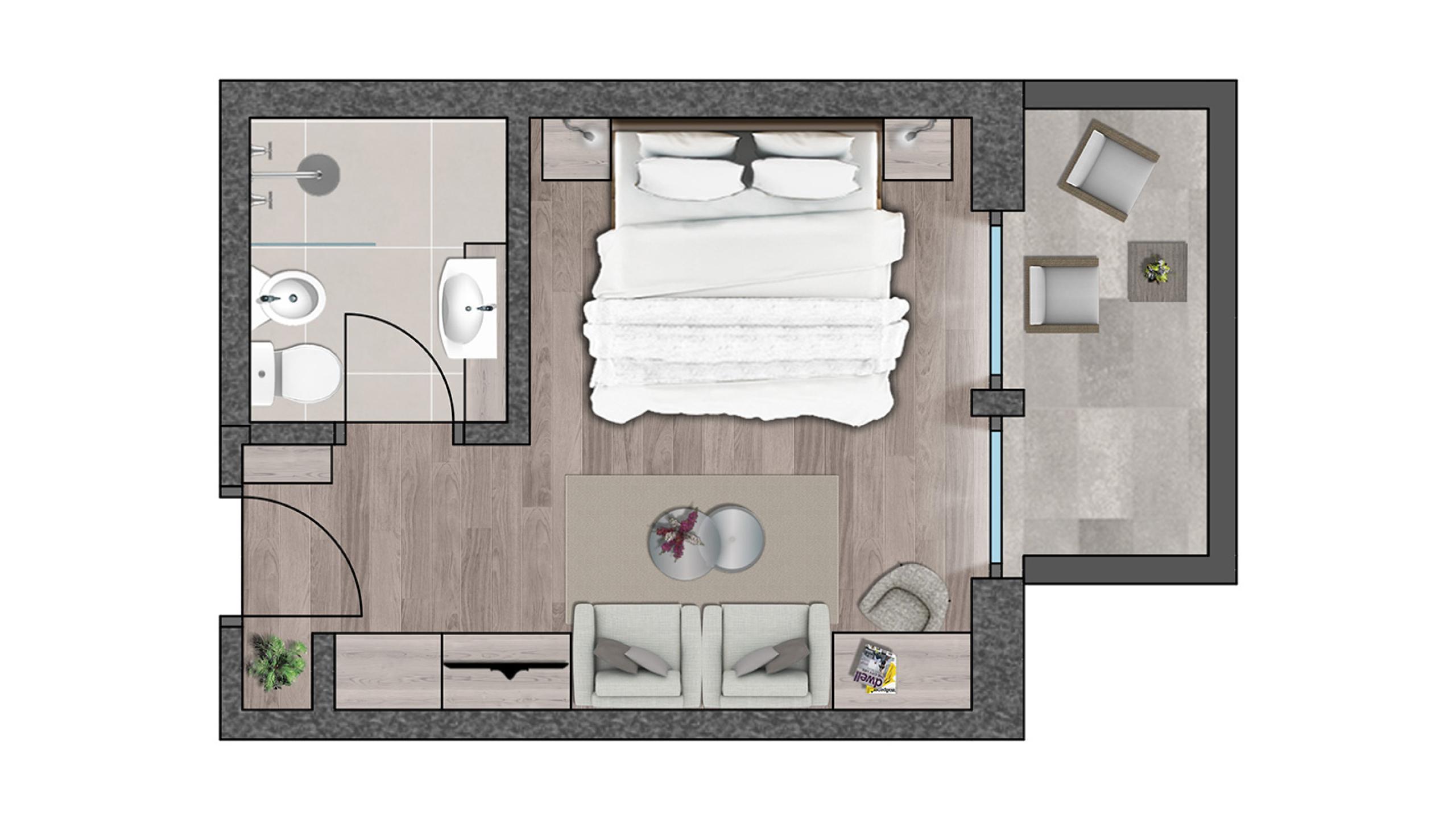 Cosy and spacious Deluxe double room, designed with great attention to detail.