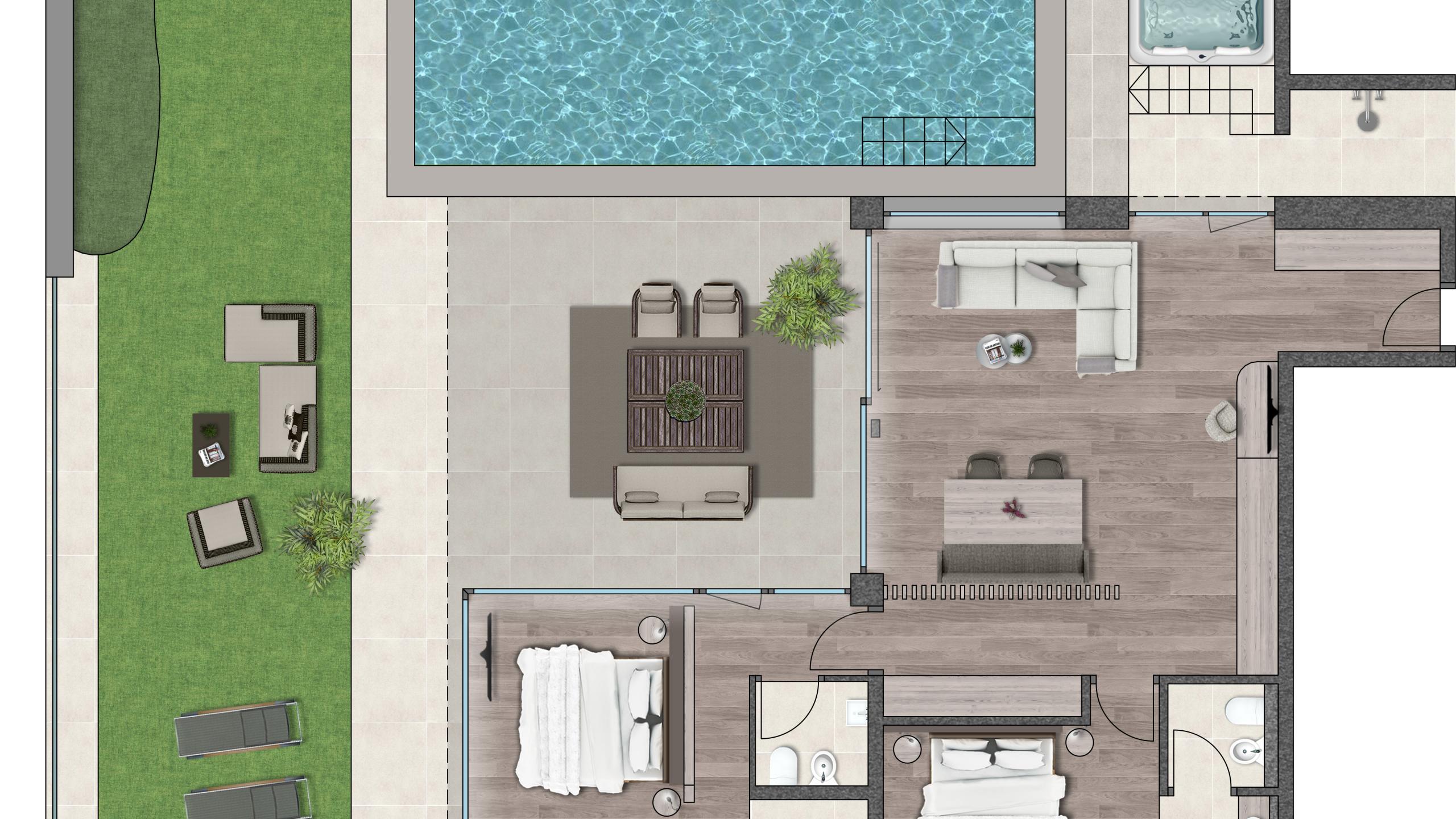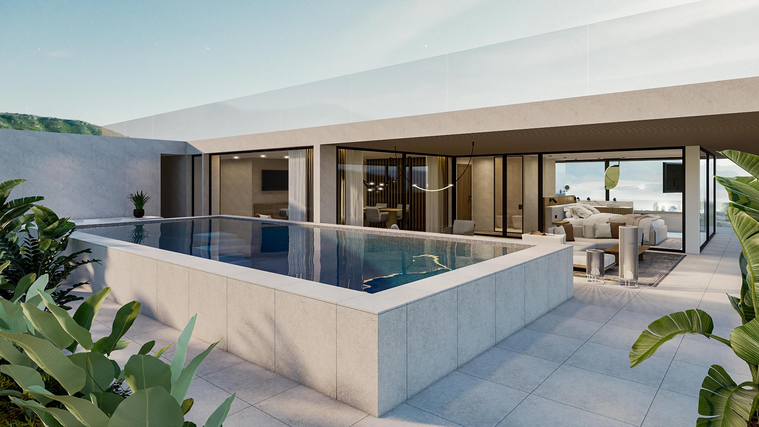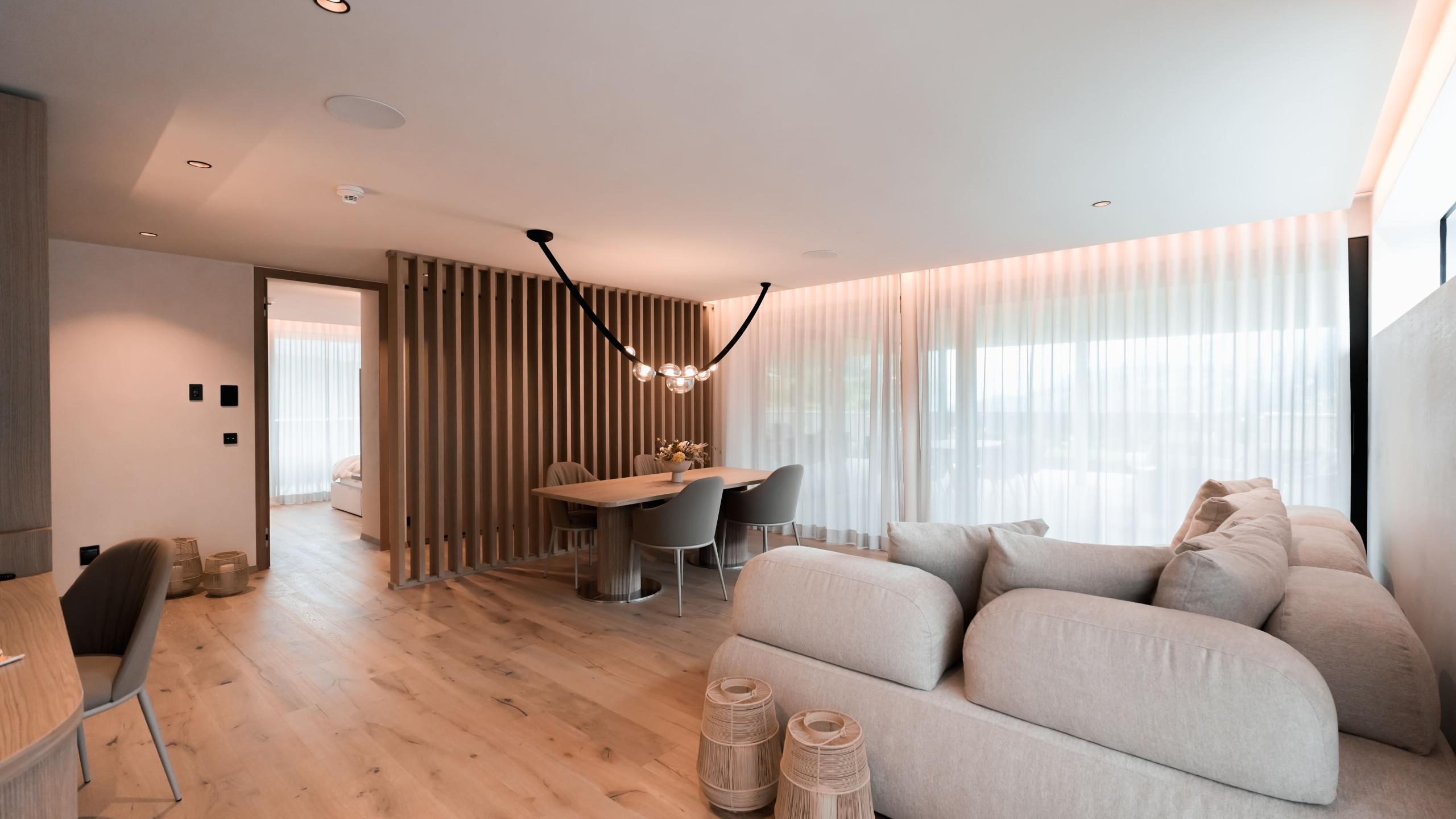 Die Suite Luss Plus bietet Platz für bis zu sechs Personen und verfügt über einen Holzboden, eine Klimaanlage, eine Outdoor-Loggia sowie eine Designer-Badewanne im Hauptschlafzimmer. Die beeindruckende 196m² große Terrasse bietet einen privaten Infinitypool (3,5 x 8 m), einen Whirlpool, eine Sauna, eine Sitzecke und Liegen. Genießen Sie den herrlichen Blick nach Westen und ein unvergleichliches Panorama Richtung Issing.