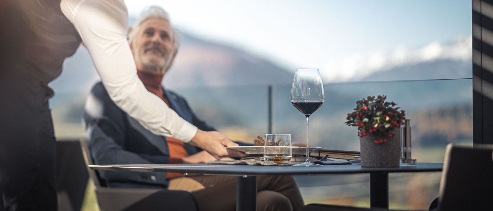 Samtiger Gaumenschmeichler oder erfrischender Sinnesverwöhner? Unser erfahrener Sommelier lebt seine Liebe zum Wein und hat ein außergewöhnliches Weinsortiment mit den erlesensten Tropfen aus aller Welt für Sie zusammengestellt. Tauchen Sie in unserem Hotel am Kronplatz in Südtirol ein in den Facettenreichtum des flüssigen Golds.