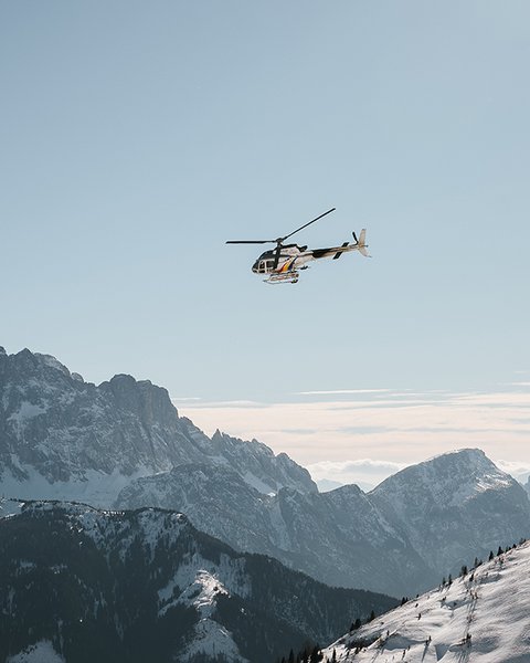 Ammirate l'Alto Adige da un’altra prospettiva provando l’ebbrezza di un volo sulle Dolomiti in elicottero, in parapendio o l'adrenalinico heliskiing. Vivere l’heliskiing sulle Dolomiti in inverno è un’esperienza unica: un’avventura esclusiva perfetta per gli amanti della neve e della libertà. In esclusiva durante una vacanza nei Winklerhotels.